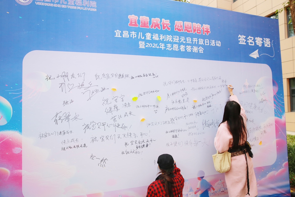 本网讯(通讯员 杨倩文)“每一朵鲜花都应该盛开,每个孩子都应该被守护……”一封温暖的邀请函拉开了一场特殊的活动序幕。12月20日,宜昌市儿童福利院举办了以“宜童成长,感恩陪伴”为主题的迎元旦开放日活动暨2024年志愿者答谢会,来自社会各界的爱心人士及志愿者分批入院探望慰问院内孤残儿童。