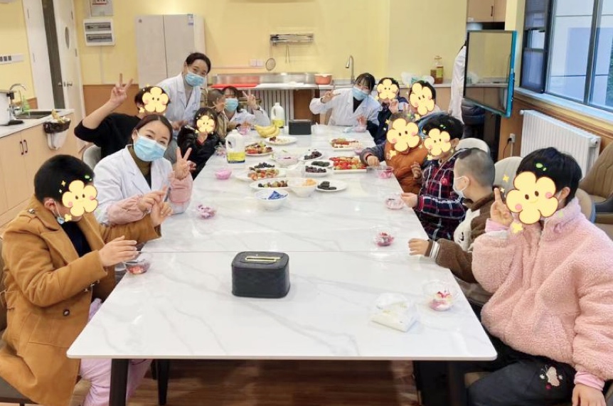 随后进入美食制作环节。在康复师耐心指导下,孩子们小心翼翼地切水果、串糖葫芦,每个步骤都充满挑战,大家相互帮助、相互学习,现场氛围温馨而热烈。